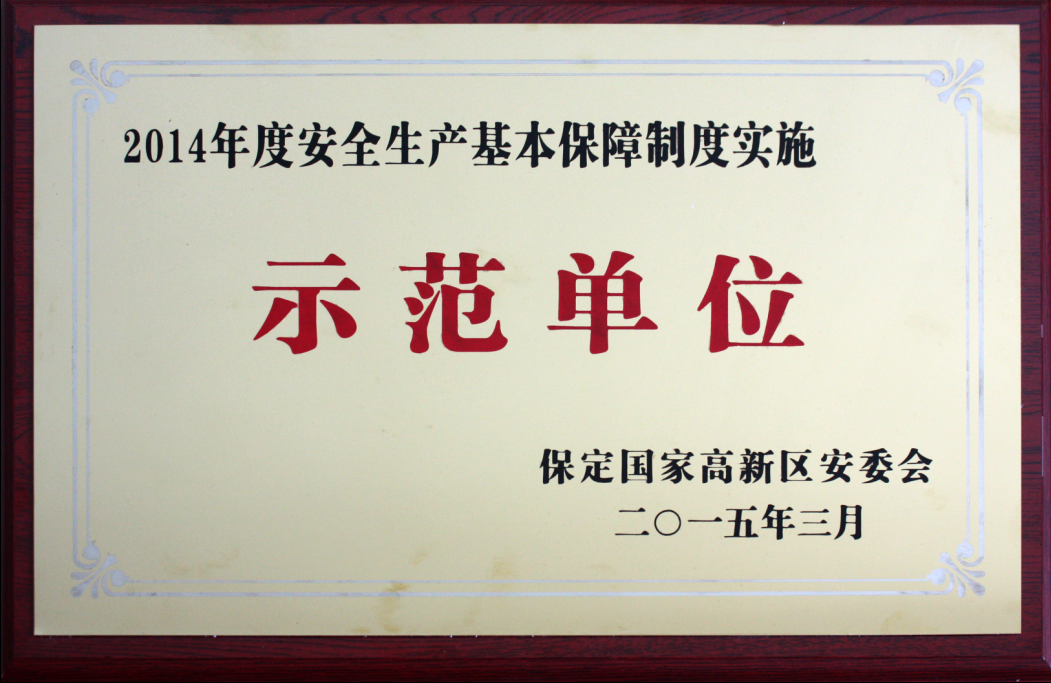 2015年3月我公司獲得2014年度安全生產基本保障制度實施示范單位稱號