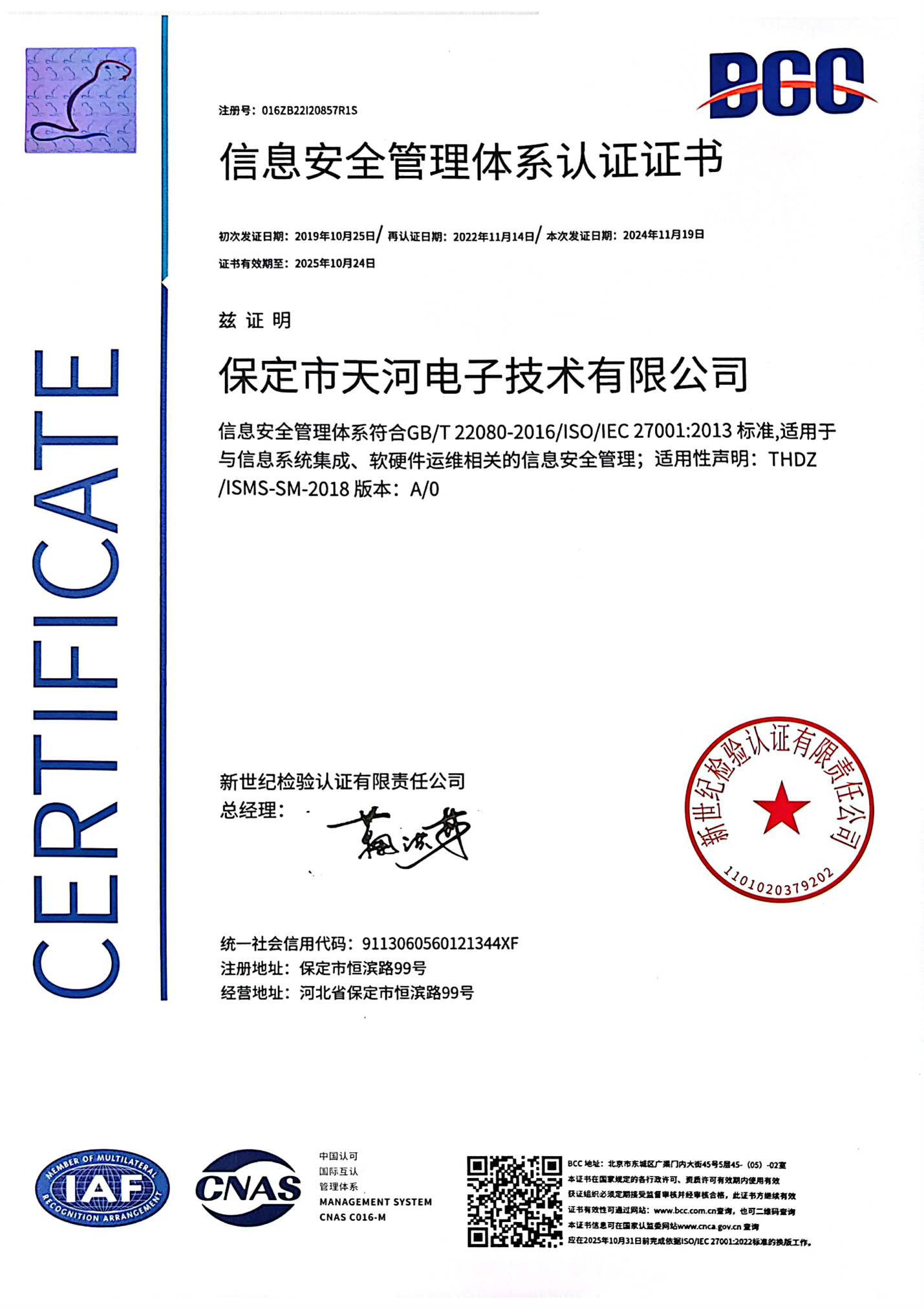 保定市天河電子技術有限公司成立于1997年,經過多年的行業技術積累和穩健快速發展,公司已成為國內具有雄厚技術和研發實力的專業化高科技企業。