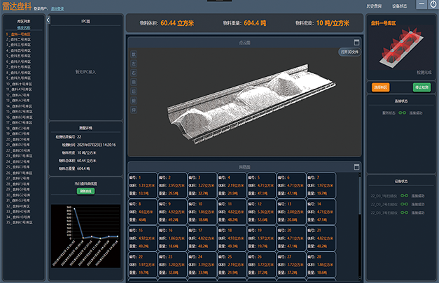 通過應用算法,支持輸出物料體積、三維點云、網格化數據等信息。