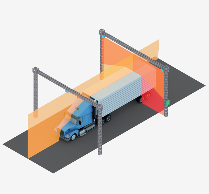 系統(tǒng)應(yīng)用于高速公路入口,系統(tǒng)主要由激光雷達(dá)、應(yīng)用單元及軟件(可選)等組成,對(duì)通過高速公路入口的車輛進(jìn)行非接觸式快速獲取車輛數(shù)據(jù)信息,提高超限治理監(jiān)管效率,降低超限治理監(jiān)管成本。